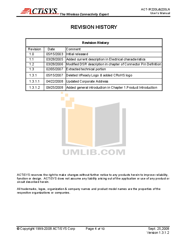 ACTiSYS reserves the right to make changes without further notice to any products herein to improve reliability, function or design. Your satisfaction is always our first concern! For further information, please visit the homepage of this product. Please refer to item 4.